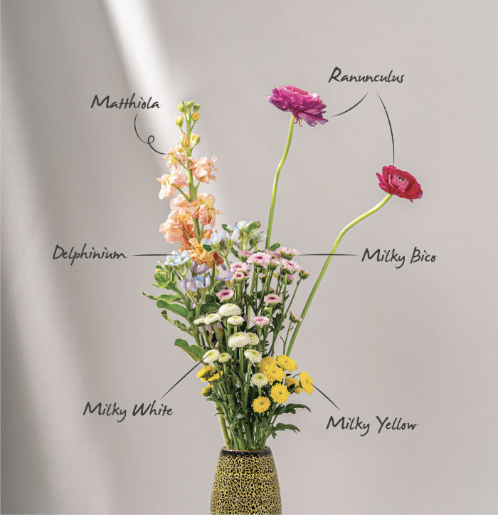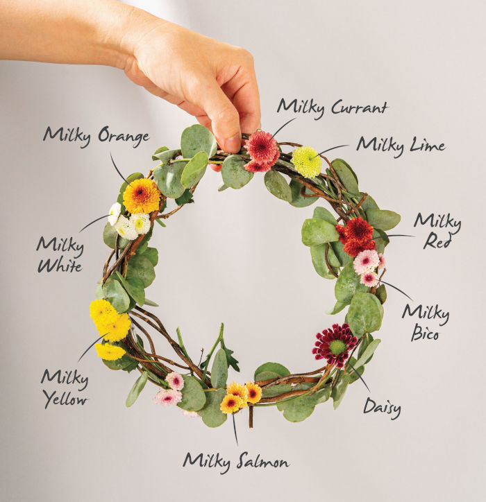 A range of mini chrysanthemums with more than 30 small flowers per stem, and a friendly, sweet appearance. A chrysanthemum with endless possibilities for mono bouquets, mixed bouquets, and flower arrangements. Comes in a product range with a wide selection of colours.